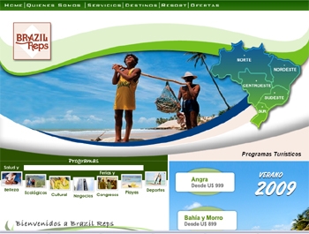Brazilreps.cl es el sitio web de una agencia de viajes, tiene relación con la venta de paquetes turísticos y la planificación de la estadía de los visitantes a las más sobresalientes ciudades de Brasil como Porto Alegre, Rio de Janeiro, Bahia, entre otras.